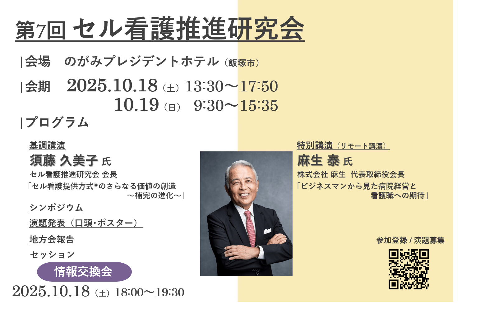 「第7回セル看護推進研究会」演題発表(口頭・ポスター)の募集期間を以下のとおり延長いたしました。                                           2025年7月18日(金) → 2025年7月31日(木)迄                        皆様からの多数の演題応募をお待ちしております。 ☆演題申込はコチラから